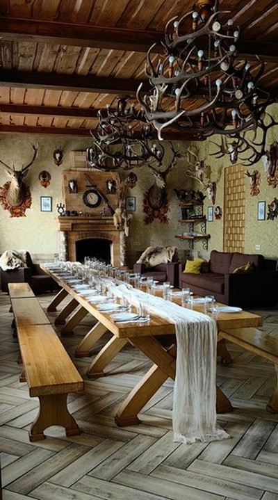 Интерьер усадьбы соответствует своему названию – стены украшают охотничьи трофеи. Хозяева с удовольствием порадуют вас домашними блюдами европейской и белорусской кухни.