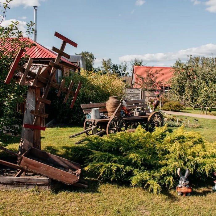 На территории агроэкоусадьбы расположен пруд, где можно порыбачить, а затем приготовить улов прямо на костре.