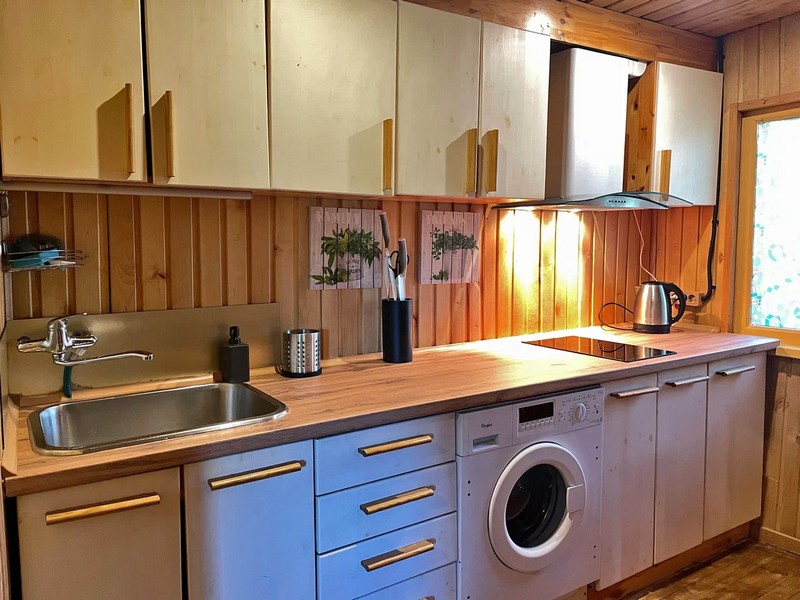 Шале оформлено в горном европейском стиле. Особую атмосферу создают невероятно красивые узоры натурального, почти векового бруса, сохранившегося в отделке внутренних стен. Дом оборудован всеми современными удобствами и техникой.