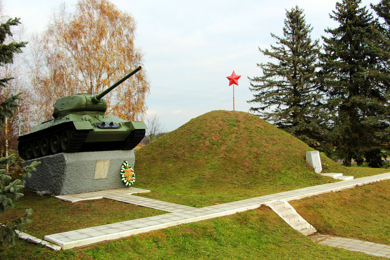 Первое захоронение на северной окраине посёлка местные жители сделали ещё в годы войны. В середине 1960-х годов на место, где сейчас стоит Курган Славы, перезахоронили 56 красноармейцев, в том числе 3 женщин – работников военно-медицинской службы. Рядом с братской могилой был насыпал курган, у которого позже установили танк Т-34. Как утверждают некоторые краеведы, эту боевую машину, утонувшую в 1941 году, достали из реки Зельвянка, отреставрировали и разместили на постаменте.