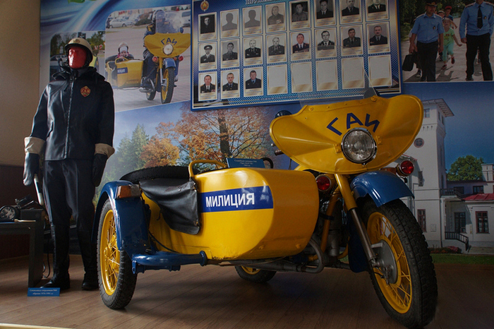 В экспозиции можно увидеть документы, фотографии, награды, газетные публикации, образцы милицейской формы разных эпох. Есть макеты пистолетов ТТ и «Маузер», револьвера 1895 года, пулемета Максима, заточки, самодельные кинжалы, сабли, кастеты, изъятые в ходе рейдовых мероприятий. Интересный экспонат – мотоцикл «Урал» 1961 года выпуска.