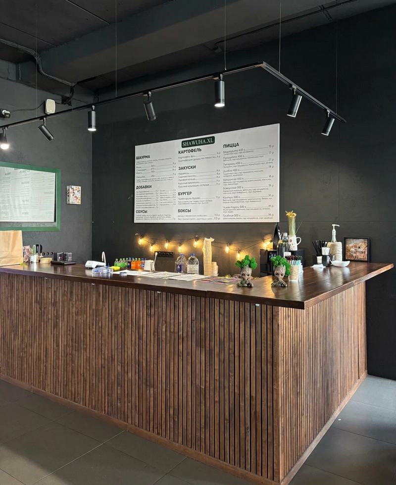 Здесь можно заказать: шаурму, хот-доги, пиццу, бургеры, фри-меню, сезонные напитки.