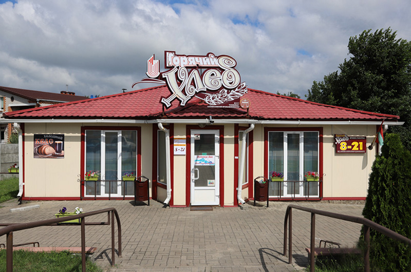Магазин «Горячий хлеб» располагается недалеко от пружанского «кольца», напротив хлебозавода.