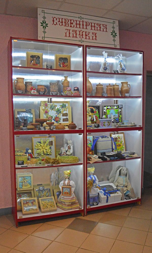 Витрина с сувенирами размещена на центральном входе Дворца культуры. Для приобретения ремесленнической продукции обращаться к администратору.