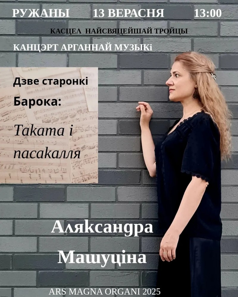 Минская органистка в субботу, 13 сентября, представит для жителей и гостей городского посёлка Ружаны Пружанского района программу «Две страницы Барокко: токката и пассакалья».