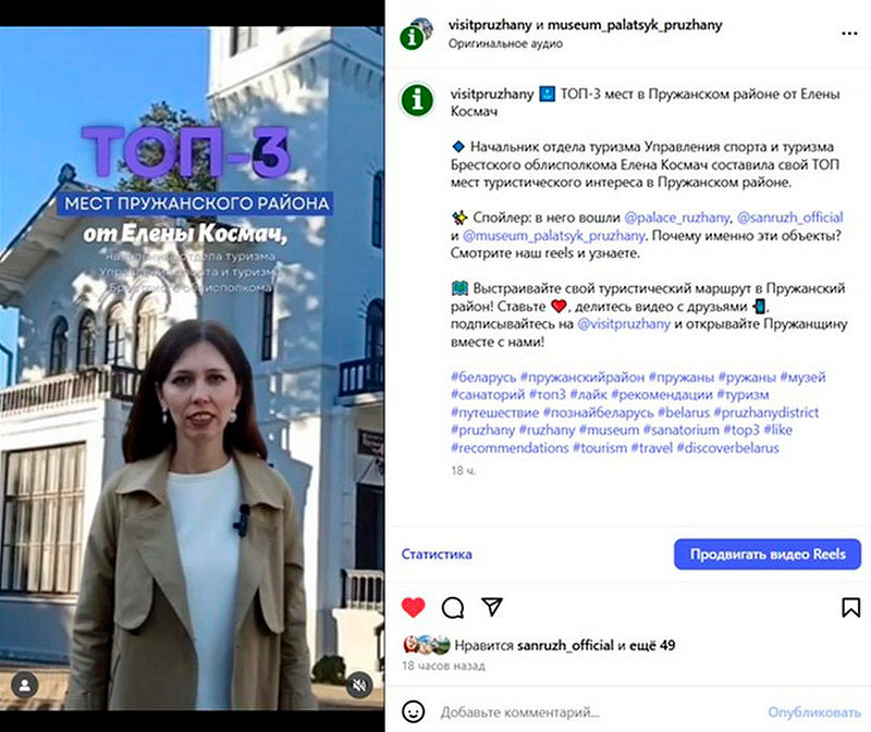 Выстраивайте свой туристический маршрут в Пружанский район! Ставьте лайки, делитесь видео с друзьями, подписывайтесь на @visitpruzhany в Instagram и открывайте Пружанщину вместе с нами!