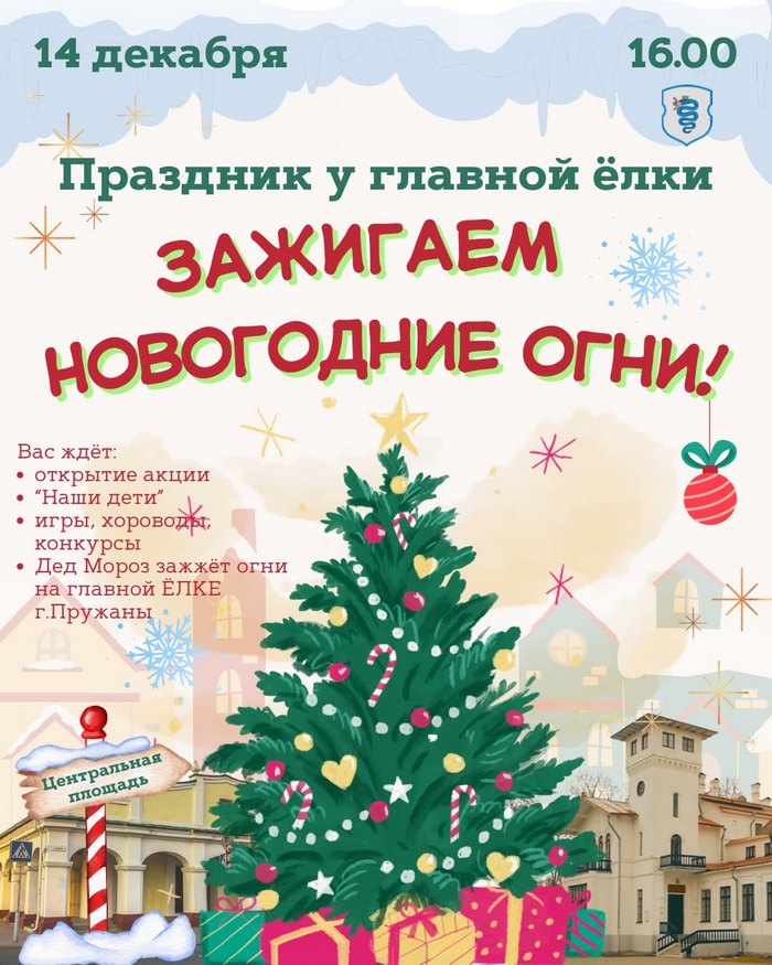 Вас ждут открытие акции «Наши дети», игры, хороводы и конкурсы. Главный зимний волшебник Дед Мороз зажжёт огни на главной ёлке г. Пружаны.