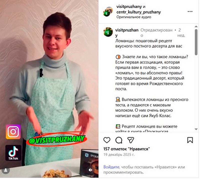Смотрите, запоминайте, записывайте, готовьте постный десерт и делитесь результатом в соцсетях и подписывайтесь на @visitpruzhany в Instagram и TikTok. Приятного аппетита!